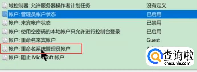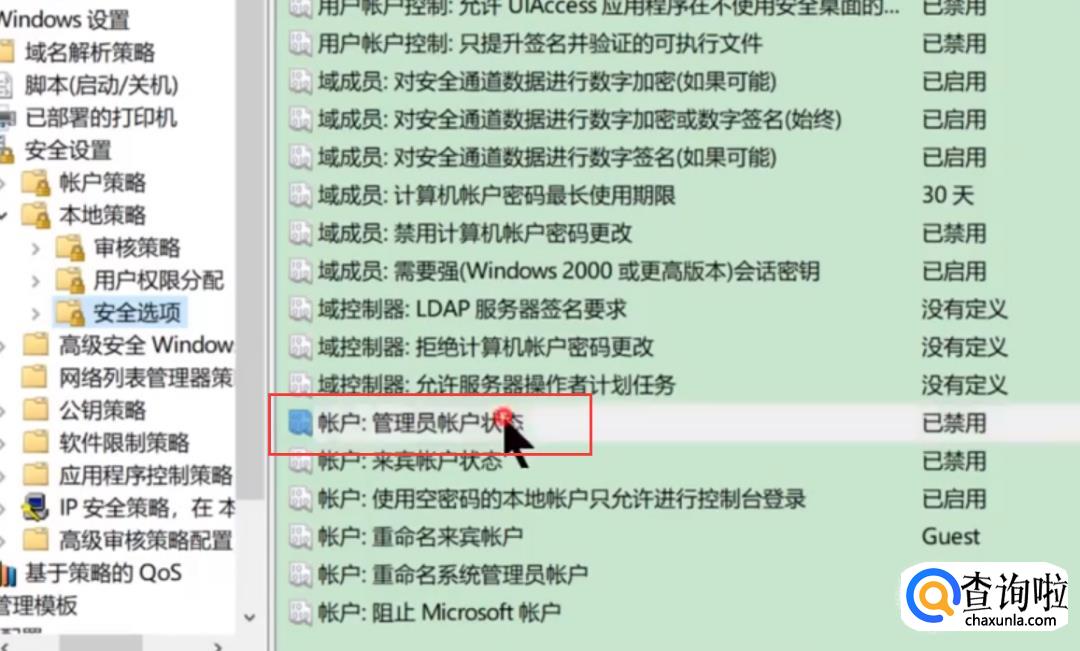 在右侧出现的结果中找到“账户:管理员账户状态”。