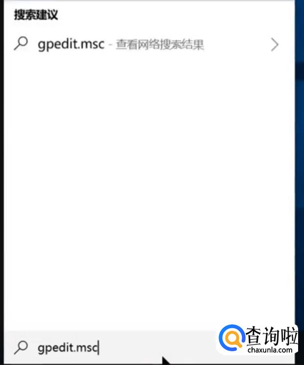 在左下方任务栏的“搜索web和windows”输入框中输入“gpedit.msc”。