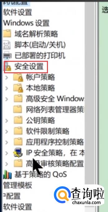 在本地组策略管理器里面点开windows设置,再点开安全设置。
