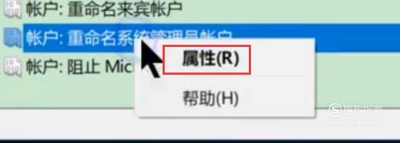 如果想修改管理员账户的名字,找到“账户:重命名系统管理员账户”,右键单击,选择属性。