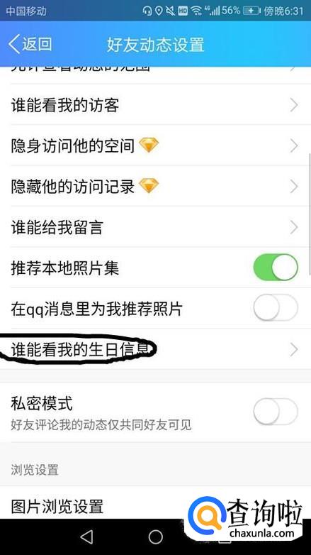 点击谁能看我的生日信息按钮,如图。