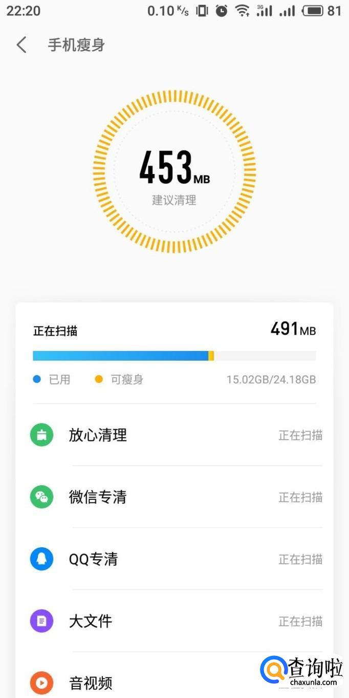 进行简单优化之后,在“手机瘦身”中,能够选择性的删除一些文件,来释放更多内存。