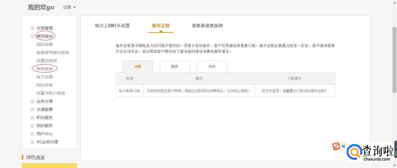 选择【费用查询】下的【账单查询】,就可以看到通话记录的清单。