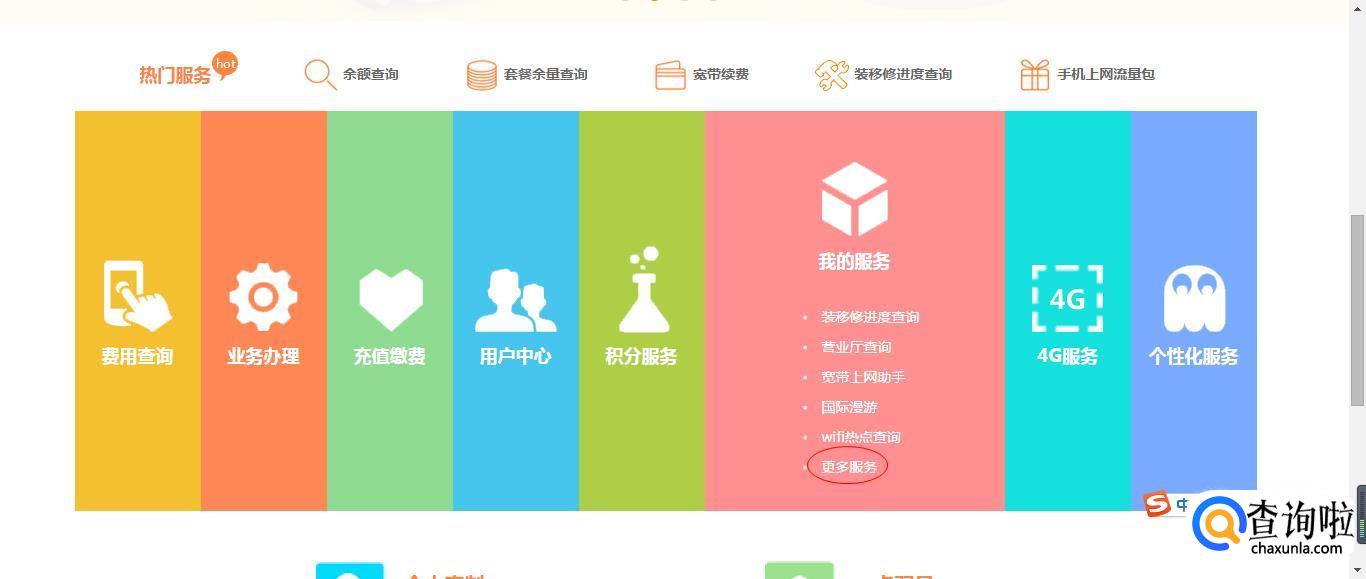 点击【登录】,在登录后,点击【自助服务】,选择【我的服务】下的【更多服务】。