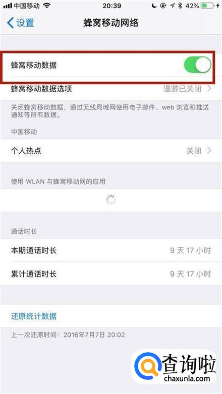 接着点击关闭蜂窝移动数据开关,如下图所示。