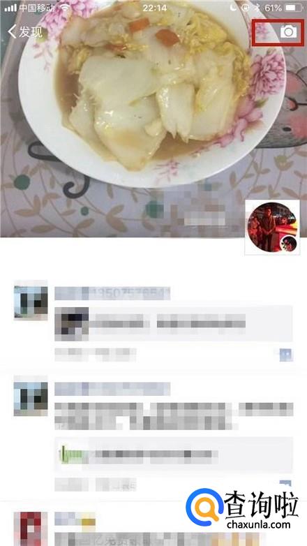 首先点击微信中的朋友圈,如下图所示。