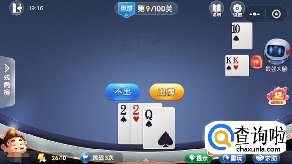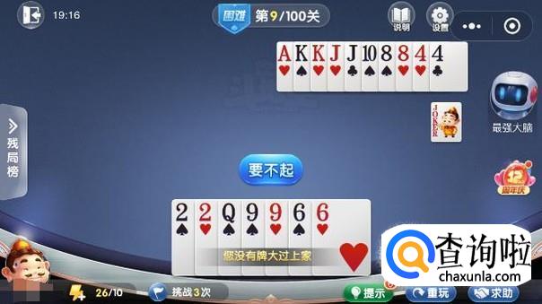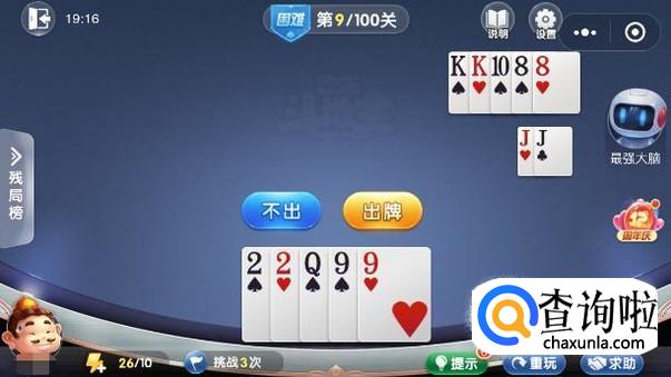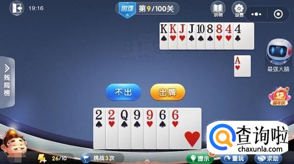 微信欢乐斗地主残局闯关困难模式第9关图文攻略