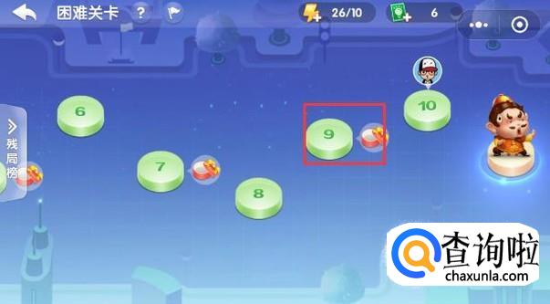 首先在【困难关卡】页面找到第9关,接着点击第9关。