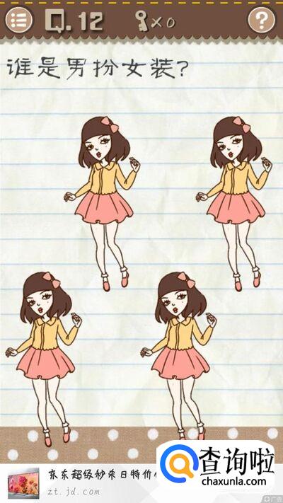 这一关的问题是:谁是男扮女装?,光是看图片觉得每一个都一样