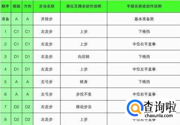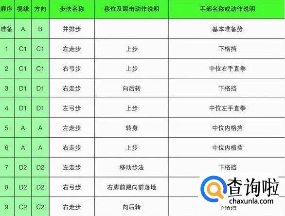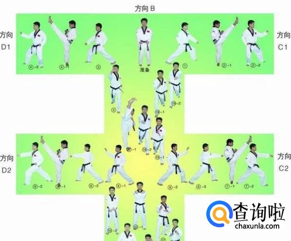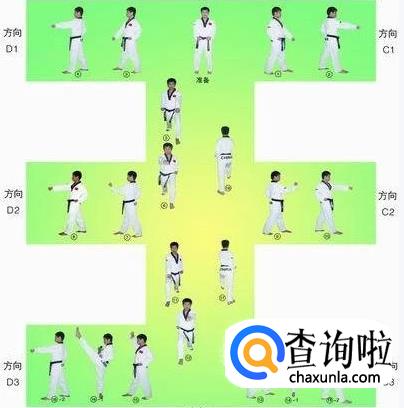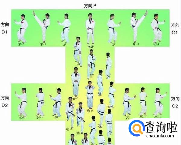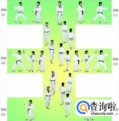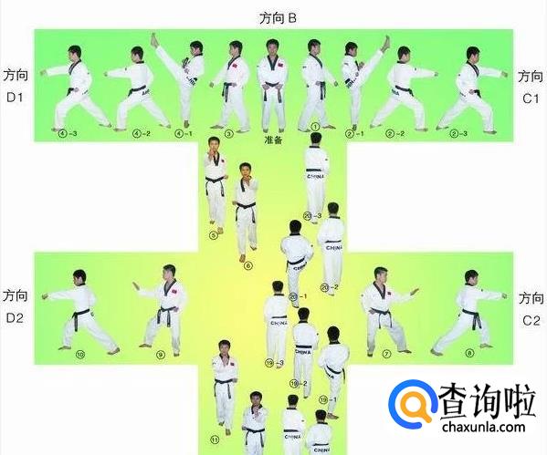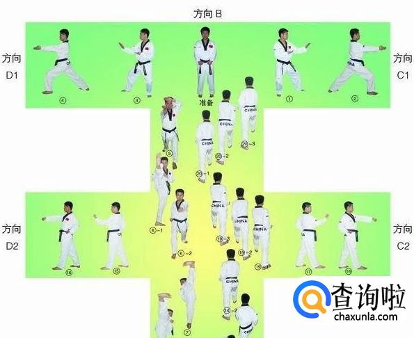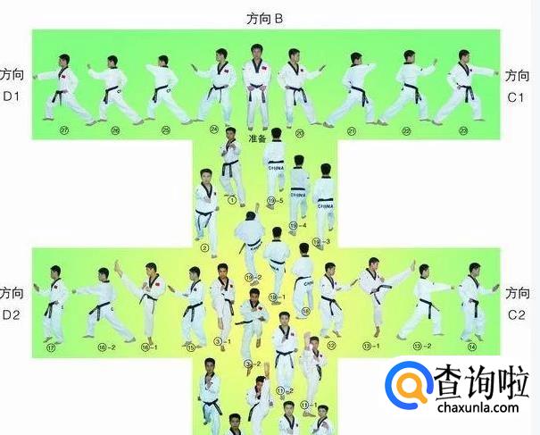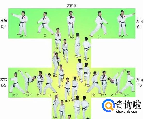 大极二章的行进路线最终形成一个“王”字,从起点开始,最终回到起点,共18个动作。