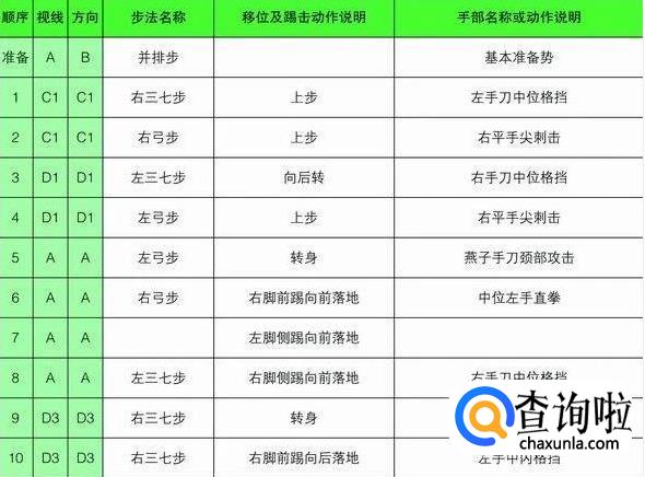 太极七章的进行线路最终形成一个“王”字,从起点开始,最终回到起点,共25个动作。