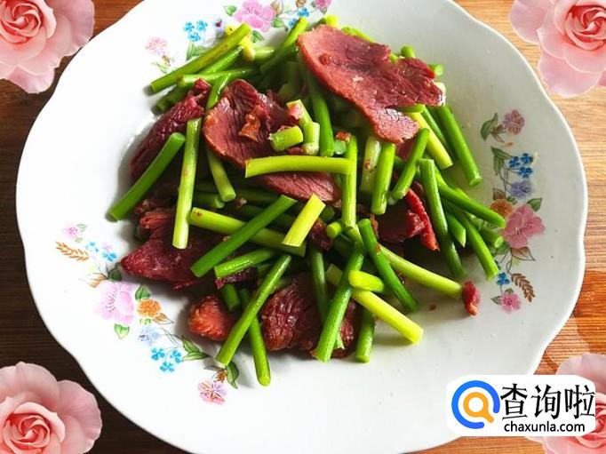 装盘,一道好吃又营养的牛肉蒜苔就做好了。