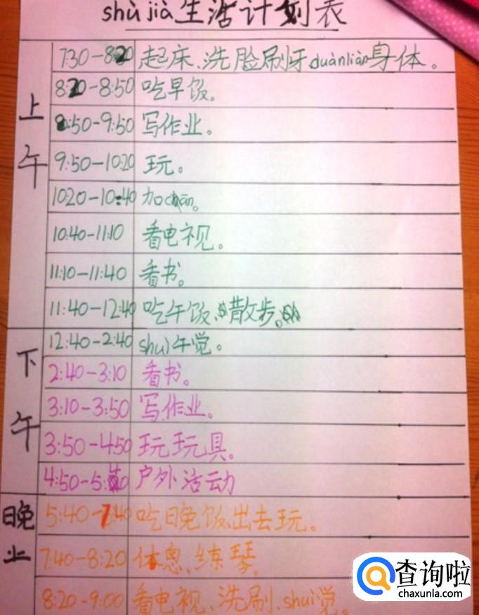 父母监督:小学生的自觉能力不是很高,会比较容易被电脑游戏或者电视吸引过去。这个时候父母就要起到监督作用。每天晚上检查表格的打卡情况。