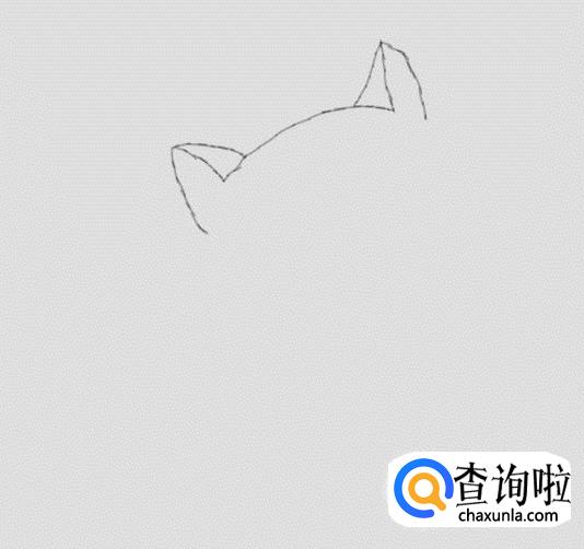 首先我们画出猫的两只耳朵和两只耳朵之间的头部,如图所示: