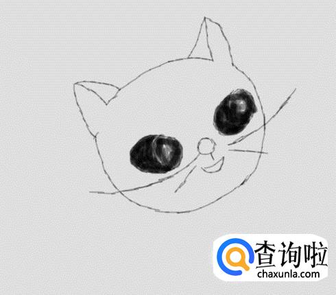 再在猫的头部上画出猫的两只眼睛,如图所示: