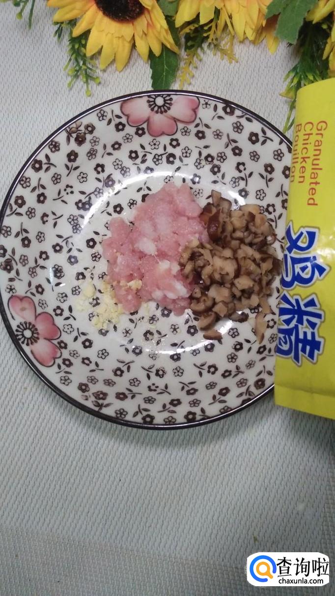 丝瓜适量,香菇适量,五花肉适量,姜适量,葱适量,蒜适量,盐适量,鸡精适量,五香粉适量,生抽适量,糯米粉适量,面粉适量,枸杞子适量。
