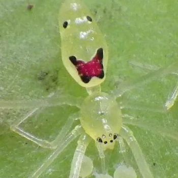 笑脸蜘蛛体型小,只有5毫米长,腹部多呈球形,几乎是透明的。没有毒性。每个蜘蛛的图案各不相同,笑脸蜘蛛腹部的颜色是浅黄色,略透明。取决于所吸收的食物而呈现红色,黑色和白色。由此产生的模式有相似性与笑的脸。因此,英文通用名称也是“快乐的脸蜘蛛”。分为淡,橙色,黄色,甚至偏蓝。按颜色可确定蜘蛛的栖息地。