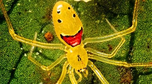 笑脸蜘蛛是美国夏威夷群岛上一种特有的蜘蛛。身上生有笑脸花纹。科学家认为这个独特的图案是用来阻吓其它猎食动物的,并称这种蜘蛛是无毒的。