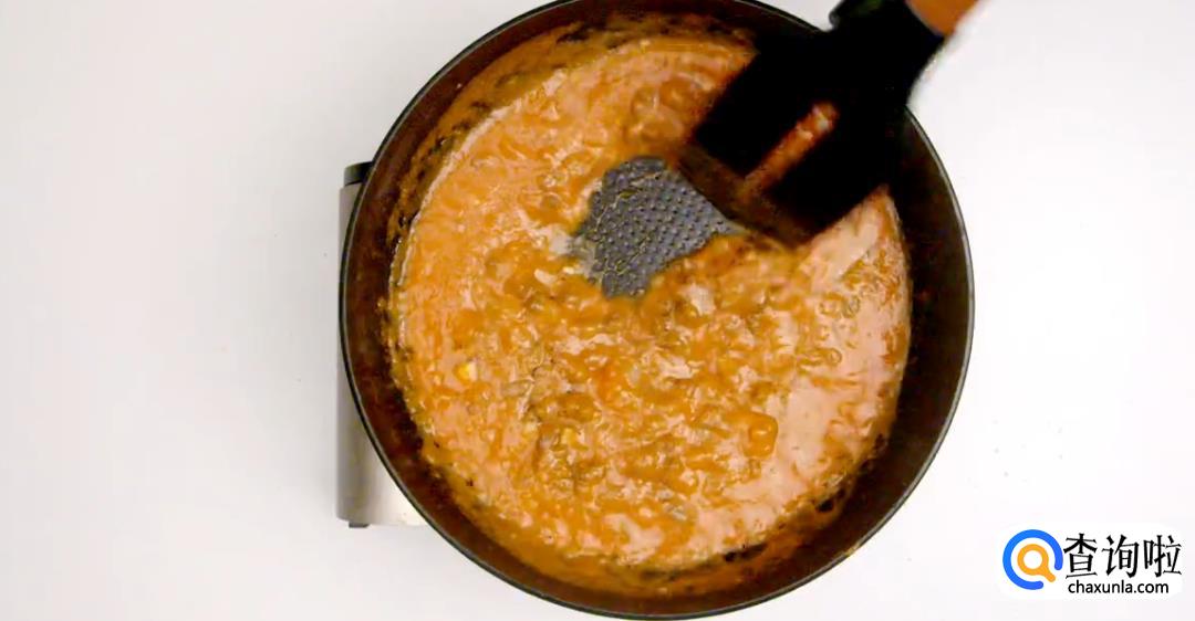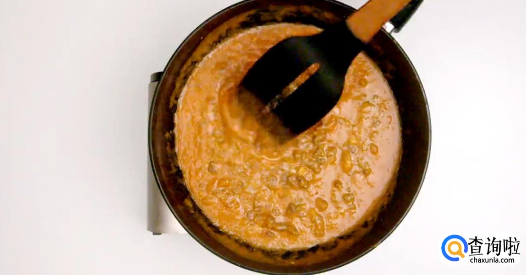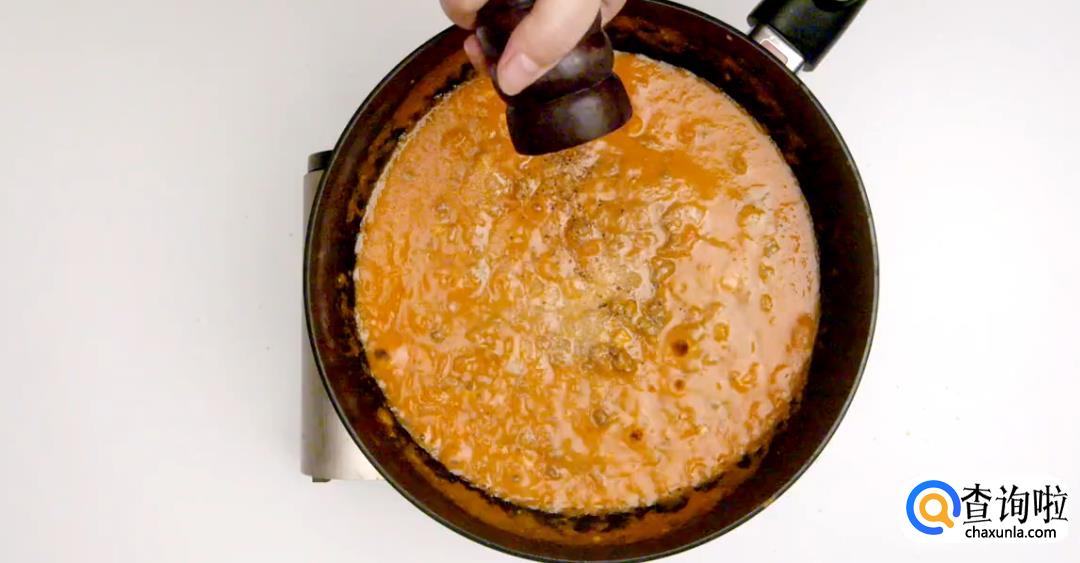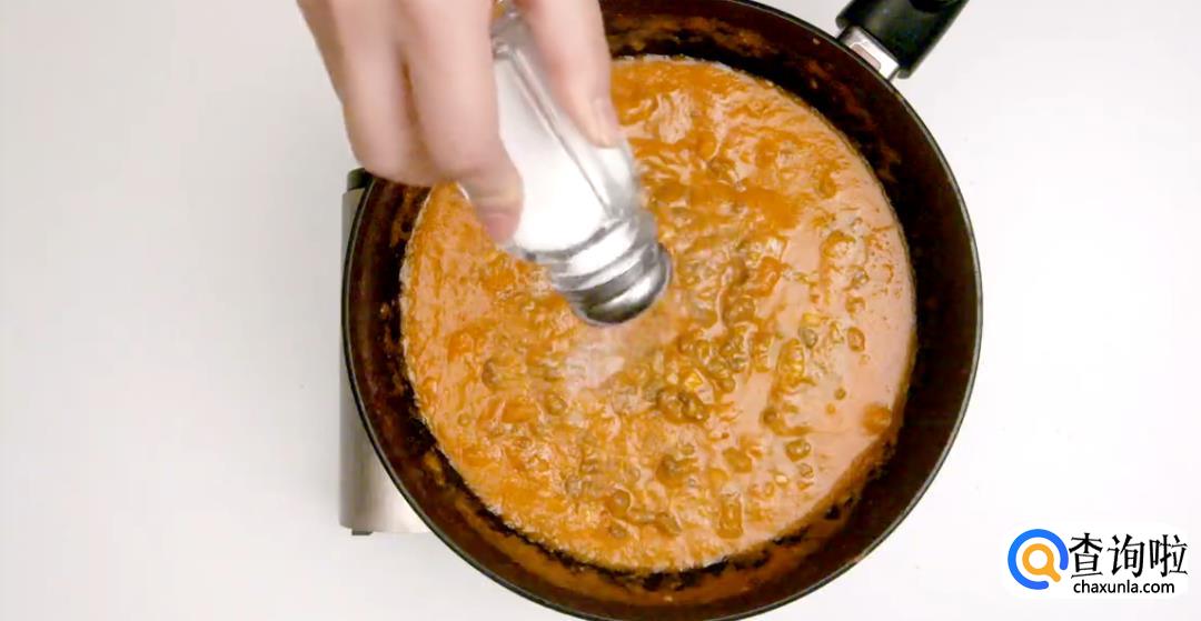 加入适量胡椒粉和海盐继续熬煮。待水份略微收干盛盘即可。