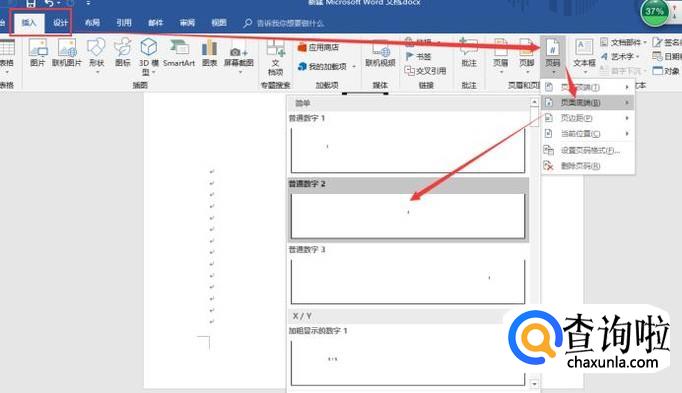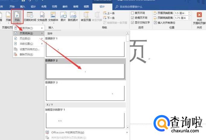 点击“插入”,“页码”,“页码底端”,“普通数字2”。