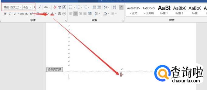 编辑奇数页,在“奇偶页不同”前打勾,给奇数页设置格式。设置小五号,红色字体。