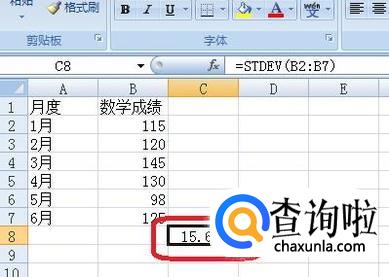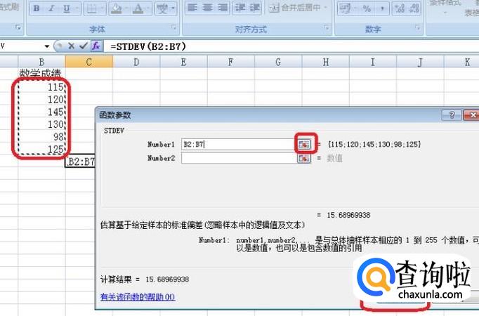 则我们就可以得到标准偏差值了,图中标注位置15.6897就是该数值,该数值大说明成绩不是很稳定。