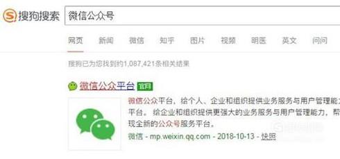 打开搜狗浏览器,在搜索框中输入“微信公众号平台”,点击“官网”进入页面。