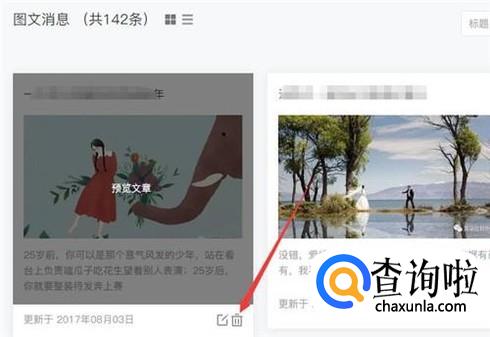 点击素材管理后,就可以看到自己发布的所有“图文信息”,找到你要删除的那个文章,把鼠标停留在文章的位置,就可以看到下方有一个“垃圾桶”的标志,点击垃圾桶的标志。