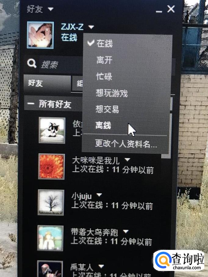 接着点击【在线】就会弹出以下6种状态,再点击【离线】即可