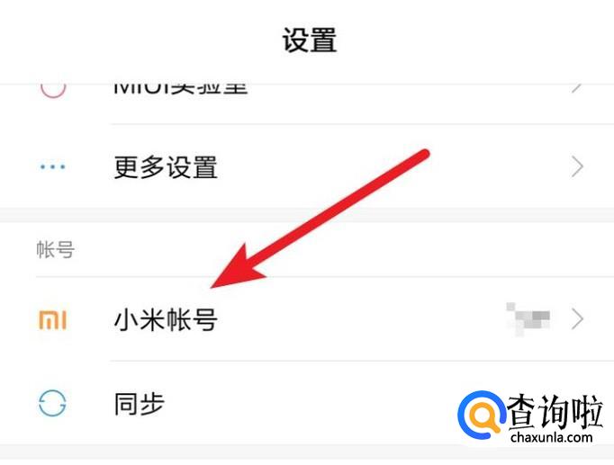 在设置页面的首页,往下拉一点,就可以看到一个‘小米账号’的选项,点击进入。