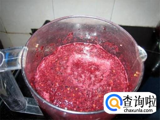 等待桑葚表面的水分自然晾干之后,我们将桑葚放入搅拌机中,将桑葚搅拌出汁水。