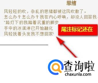 我们要删除尾注,即要删除尾注标记,亦要删除对应的文本。我们把光标定位在尾注标记的右侧