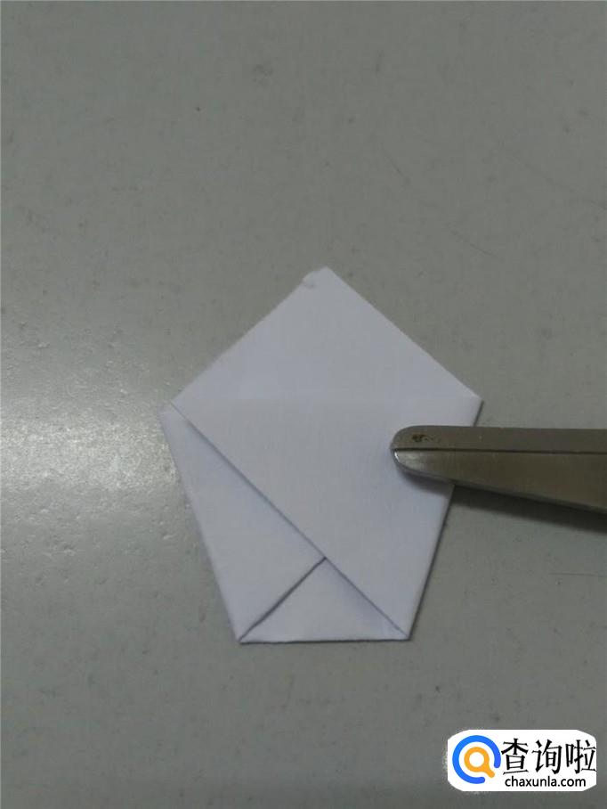 把上层上面的角往下折,压住两个小角,再把下层上面的角往后折。