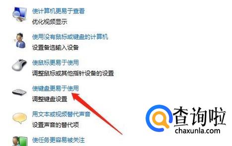进入轻松访问中心后,接着点击使键盘更易于使用,如图所示。