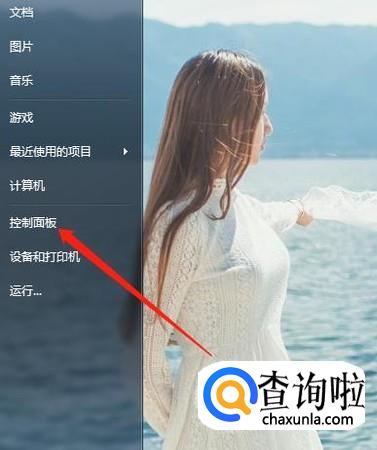 点击电脑左下角的菜单,然后点击控制面板,如图所示。
