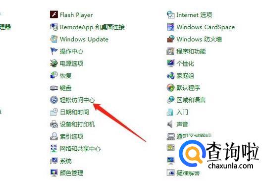 进入控制面板界面后,点击轻松访问中心,如图所示。