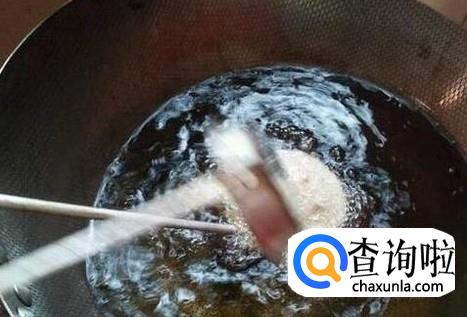 把油放至锅里,油温80度左右,然后用圆铁盏把迷糊装到热油里,先不要倒出来,等米糊定型,再倒到油里炸。