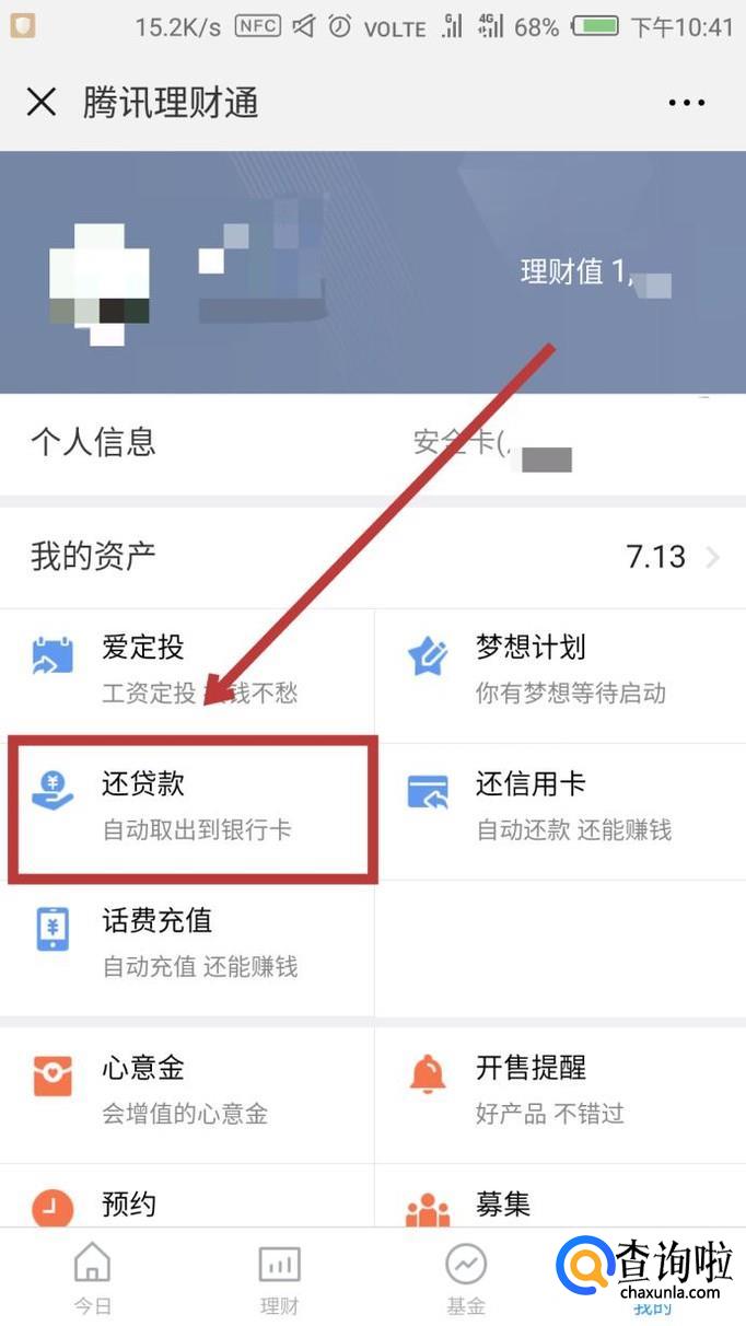 然后在【我的资产】下面找到【还贷款】,点击进入。