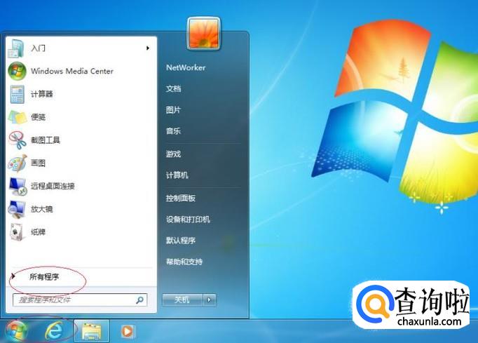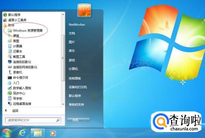 唤出开始菜单列表,选择"所有程序→附件→Windows 资源管理器"项。