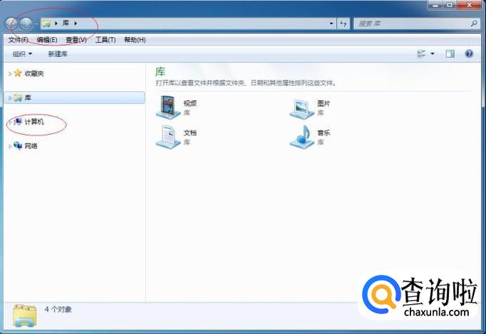 唤出"Windows 资源管理器"程序窗口,点击左侧"计算机"文件夹。