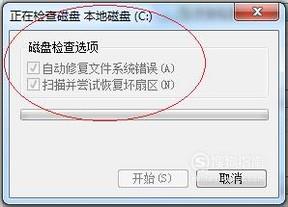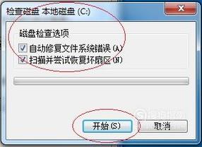 勾选"磁盘检查选项"全部复选框,点击"开始"按钮。