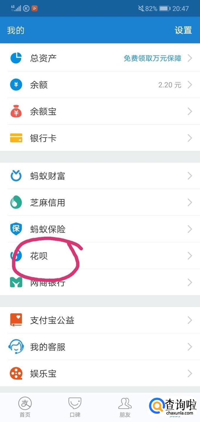 然后,进入支付宝后,在右下角有一个“我的”,点击它,然后进入下一个界面,点击找到“花呗”,并且点击它。