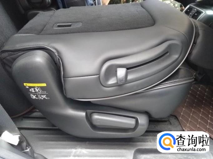 首先来看一下车身右侧的后排座椅,靠背上有个拨块,向上拨,坐垫会弹起来;