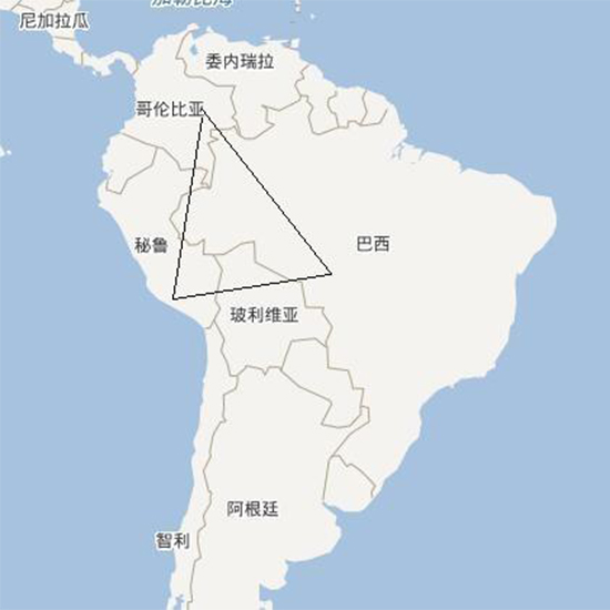 世界上三大毒品产地中银三角不在亚洲。银三角是指拉丁美洲毒品产量集中的哥伦比亚、秘鲁、墨西哥和巴西所在的安第斯山和亚马逊地区。这一地带总面积在20万平方公里以上,由于盛产可卡因、大麻等毒品而闻名,所以从20世纪70年代起,被人们称之为“银三角”。其中秘鲁是世界最大的可卡因产地,古柯种植面积达8万公顷以上,每年产古柯6万吨左右。利用古柯叶提炼可卡因是秘鲁出口最大的农产品,每年可赚外汇1亿美元。玻利维亚年产古柯叶5万吨左右,居世界第二位。