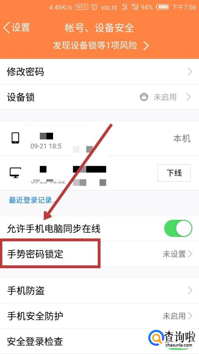向下翻,找到【手势密码锁定】,点击进入。