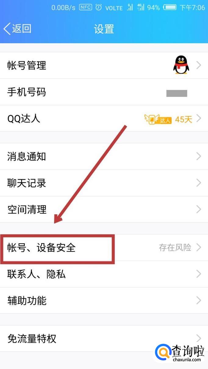在【设置】界面中找到【账号、设备安全】,点击进入。
