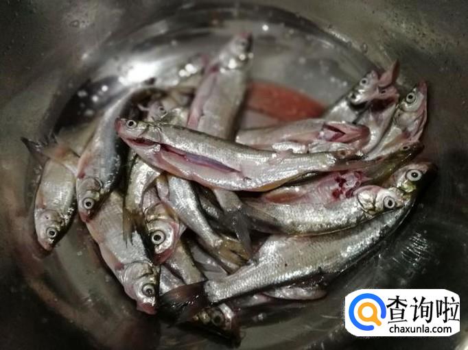 小鱼剖杀干净,去肚腹去鳃后,清水洗净。