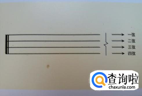 尤克里里的曲谱是4根横线,从上到下依次代表着四三二一弦。