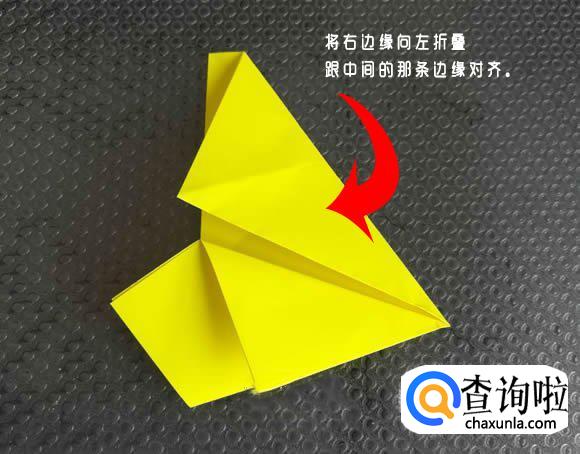 将右边缘向左折叠,跟中间的那条边缘对齐。