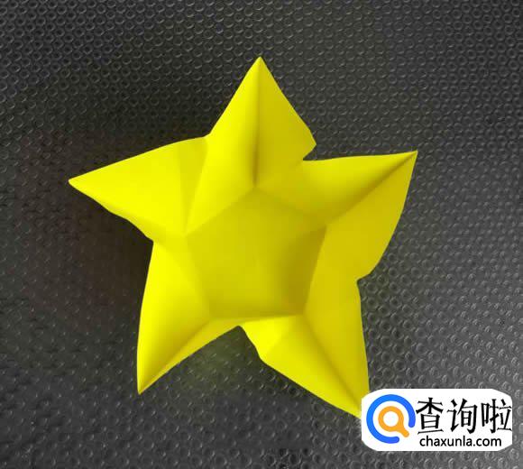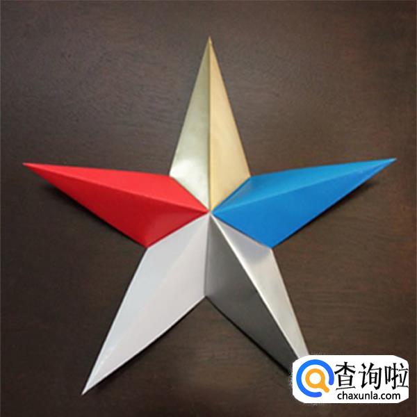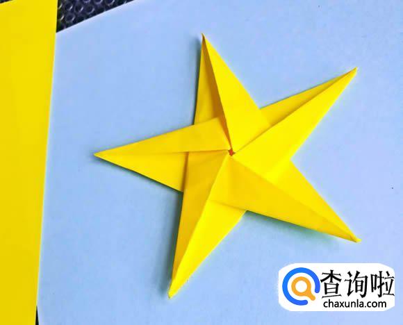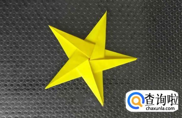 一个可爱的五角星折好了,你可以将它贴到卡片上,或是用绳子挂到圣诞树上作为装饰。